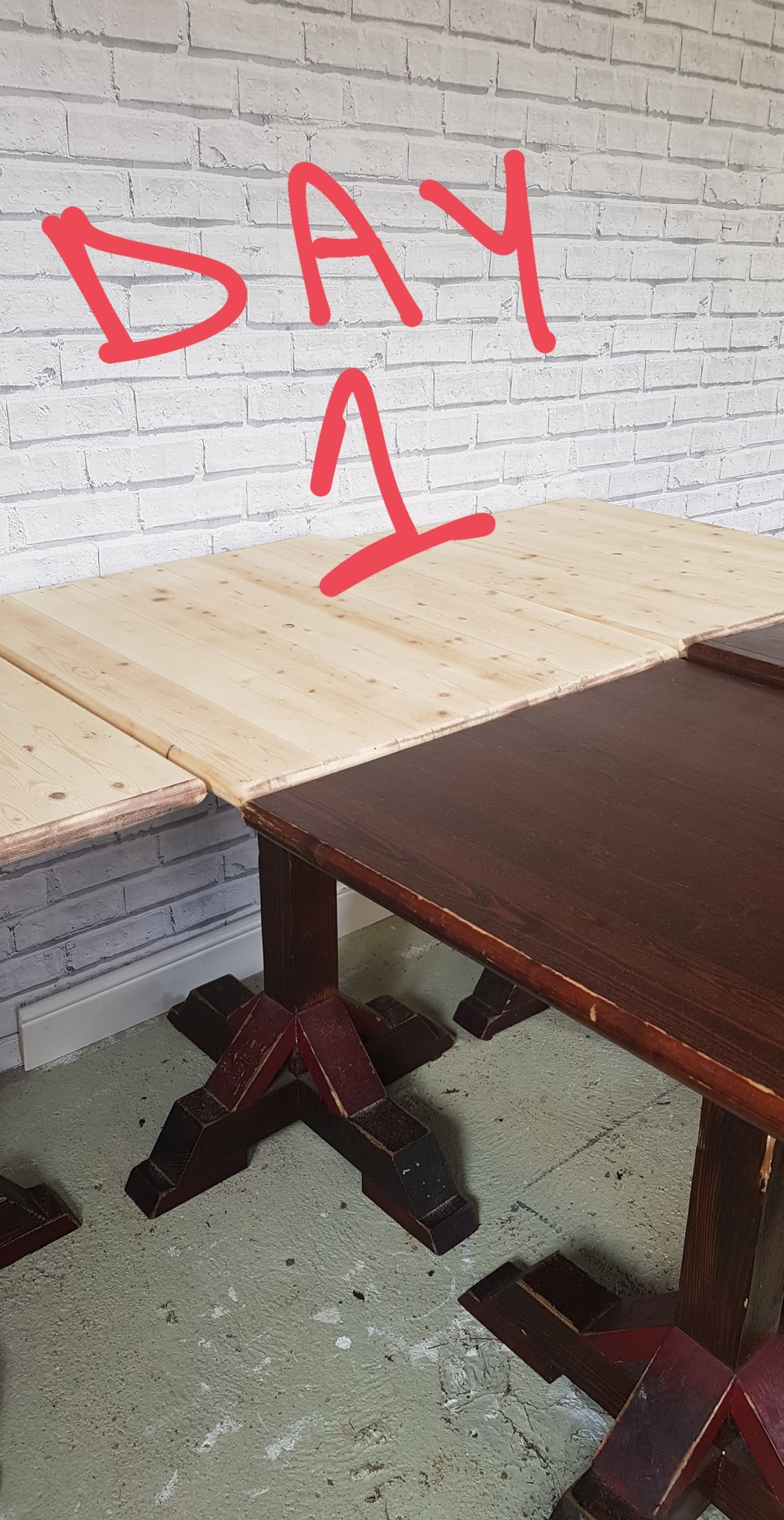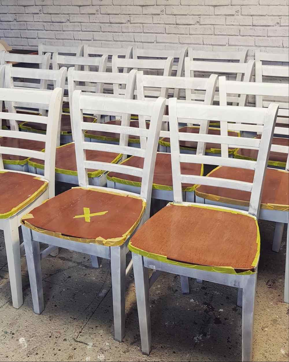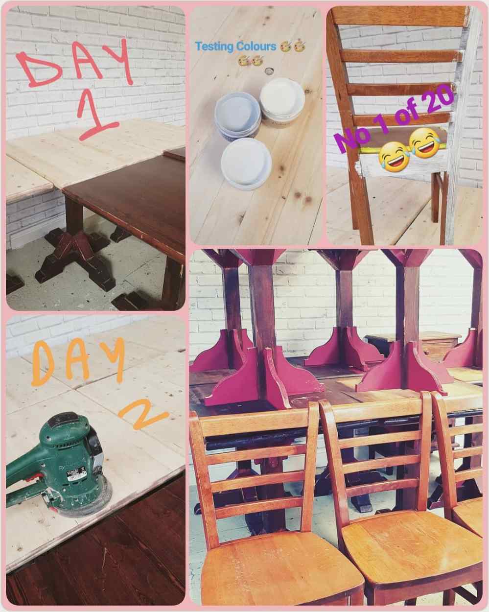 It was touch and go if i would ever finish πππ. But 10 tables and 20 chairs later here they are all set for a new chapter. It was not easy and to be fair i couldnt have done it without the fantastic help from my right hand woman Trish .