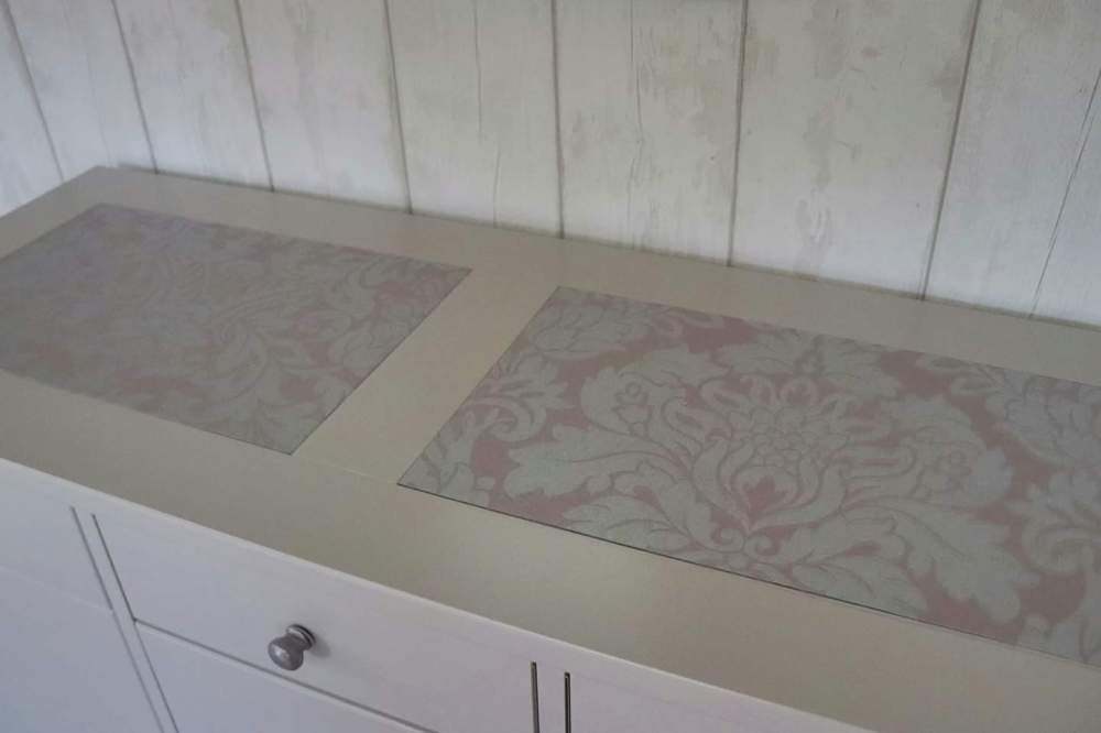 I really love revamps like this. The huge change in pieces like this still amaze me. As usual painted using Colourtrend Paints but my first time using 🎨Thresher and it is just a stunning colour. What a great way to cover over the marble by decoupaging with wallpaper. It really finishes the piece off beautifully. Finally even the knobs got a makeover with a littlle sponge effect using pink and silver. Now onto the next project 😂😂