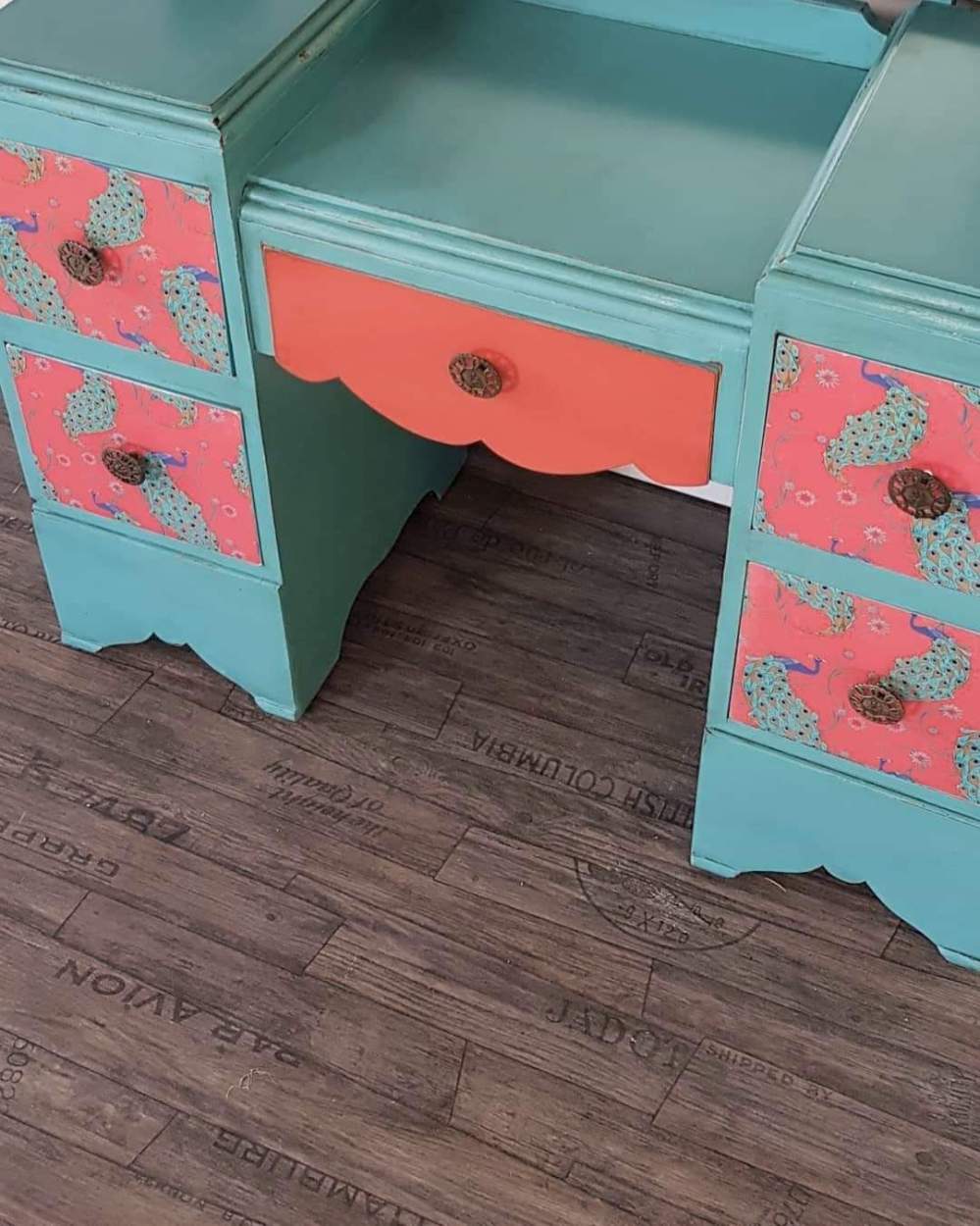 Projects Dressed Up Table Posted by therevamptramp on December 13, 2018 This bright, bold dressing table is available to buy in my etsy shop. I went all out crazy fun with this one How fab is the paper on the drawers ππ. This one is not for the faint hearted ππ€£ Share this: Click to share on X (Opens in new window) X Click to share on Facebook (Opens in new window) Facebook Click to email a link to a friend (Opens in new window) Email Like Loading... Related