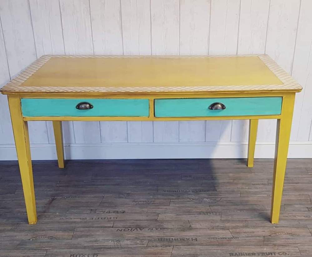 My new kitchen table ππ. Its my xmas present to myself ππ. Well to be honest we had a little accident with our old kitchen table whuch made it unfixable oops. I revamped a two drawer chest recently and am madly in love with them but absolutely no space to keep them so decided to design my new table in the same way and i am over the moon with it. Colourtrend Paints π¨ Can Can