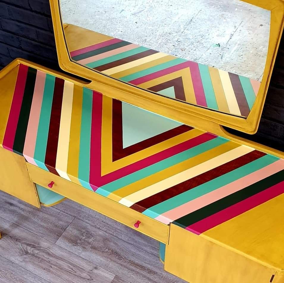 This is what happens when I’m let loose on a commission 🙈🤣. What started off as yellow piece with a little pink soon turned into every colour I had 🌈 aswell as every bit of patience I had 😂. But if this dressing table doesn’t brighten up this day I don’t know what will 🌅🌞🌝.
