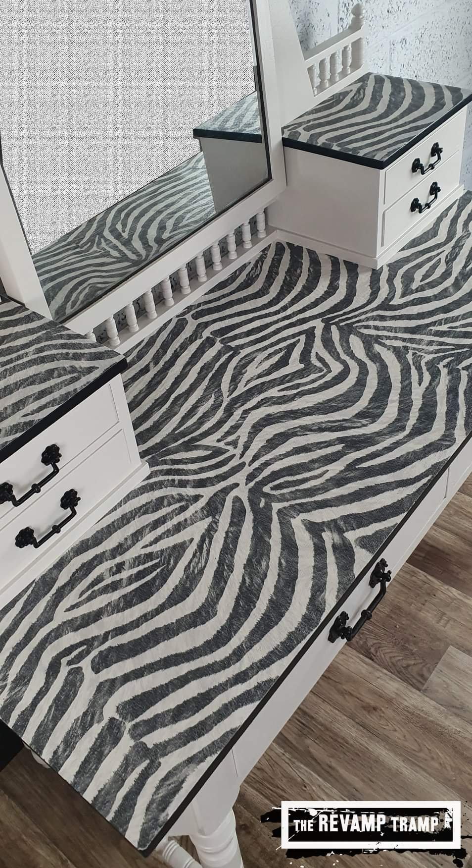 How funky is this dressing table now. I absolutely love animal print and so when Evelyn picked out this paper for her dressing table i just knew it was going to turn out fabulous. Again painted in my go to White from Colourtrend Paints 🎨Mucky Swan. I realize i use a lot of words starting with F 😂. Anyhow thank F its Friday. Enjoy the bank holiday guys.