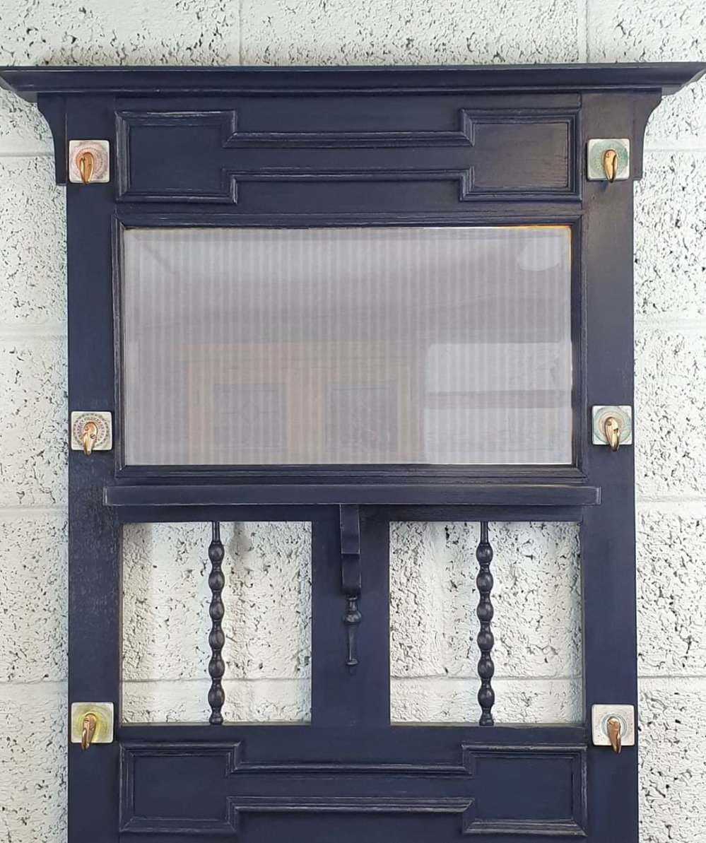 This hall stand was another piece sidelined for a while. Again wasn’t sure what i wanted to do but happily it was picked up for a commission and is now sold. it is painted in the beautiful 🎨Inkwell from Colourtrend Paints. A little distressing and a touch of black glaze to finish. And of course if you were wondering what i was making yesterday then wonder no more 😂. New hooks with little decoupaged tiles.