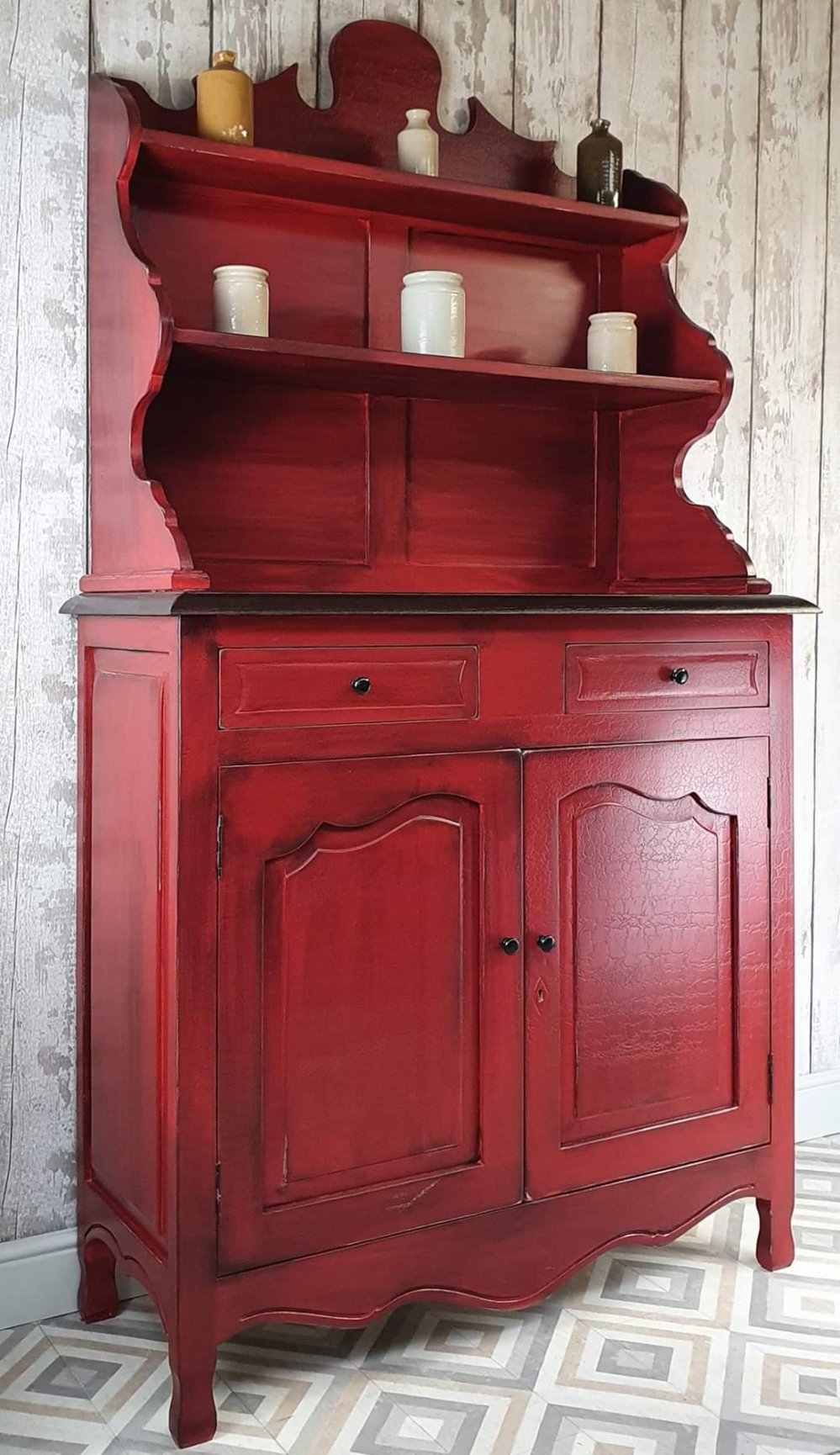 I love a brave soul who goes for red. This Is a pretty drastic revamp, but if i do say so myself it turned out amazing. My client knew exactly what she wanted from the very start. Red, distressed and black glaze and that’s exactly what she got. I tried a new red from Colourtrend Paints called 🎨Siren and oh my it is just fabulous. I dont actually talk about glaze too much which is odd since I use it a lot. I always have a stock of Black, Brown and White ready made glazes from General Finishes which I get from the The Carpentry Store. Maybe I might do a little tutorial on glazing soon if things get quiet for me. For the moment though I’m up to my eyes in commissions so I’m lucky and happy and covered in paint as always 🤣