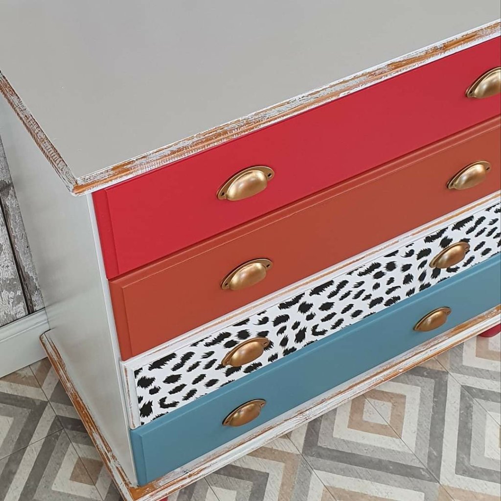 Finally finished the 3rd Chest of Drawers from the @Kollect delivery. Didnt even have a plan for this one just blindly picked a few colours to go with the wallpaper on drawer 3. While I have the time I’m trying out some of the more unusual colour combos. Some will work and some wont no doubt π.